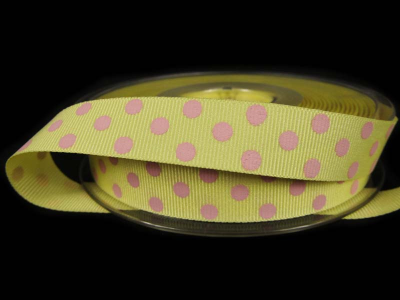 Wstążka 15mm ryps cytrynowa KROPKI róż