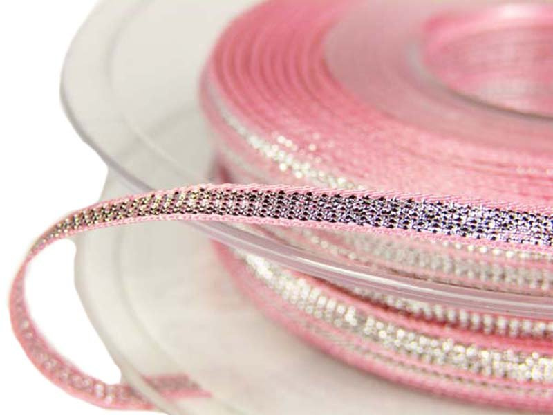 Piękna, błyszcząca, elegancka wstążka lurexowa z dodatkiem koloru na brzegach tasiemki.
