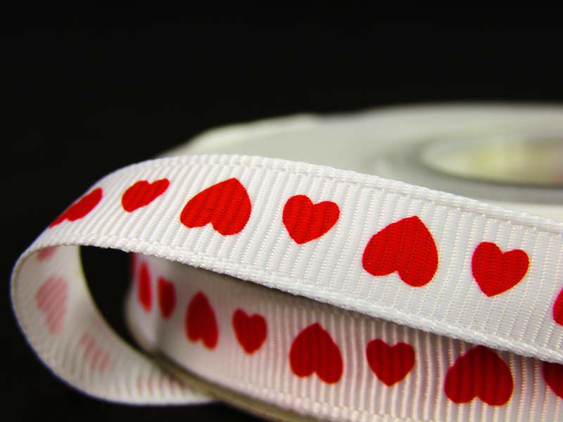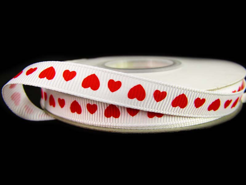 Wstążka rypsowa o szerokości 10mm z czerwonym nadrukiem.