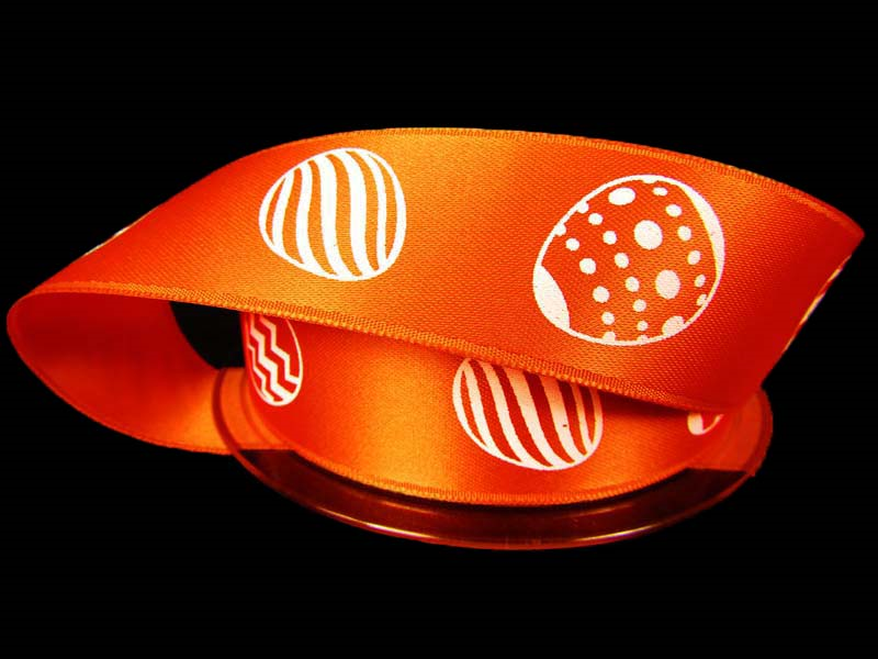 Wstążka 2,5cm atłas PISANKI pomarańczowa