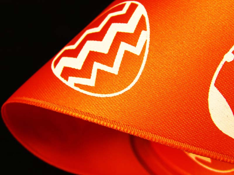 - Wstążka atłasowa o szerokości 40mm z białym, wielkanocnym nadrukiem.