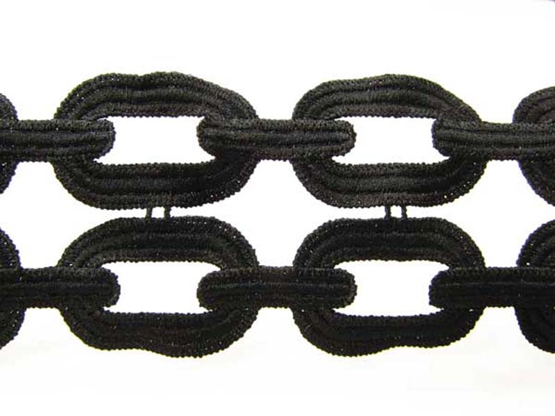 Taśma gipiurowa w formie 2-rzędów łańcuchów o szerokości 6,5cm w kolorze. Koronka zrobiona z matowej nitki.