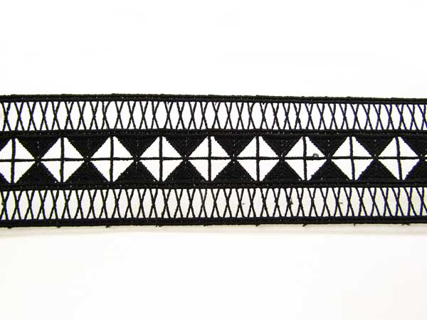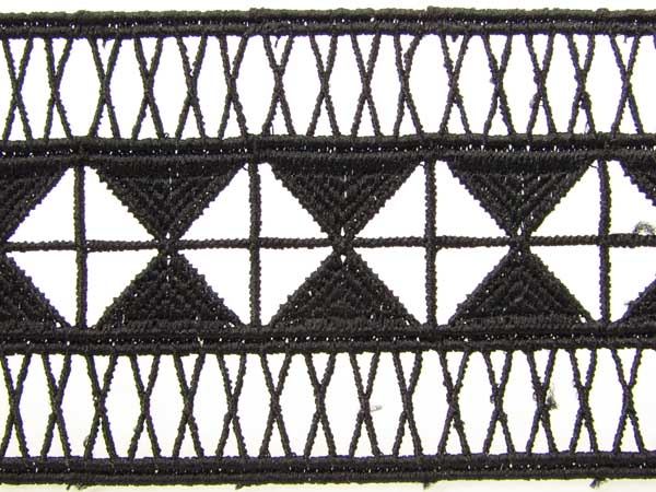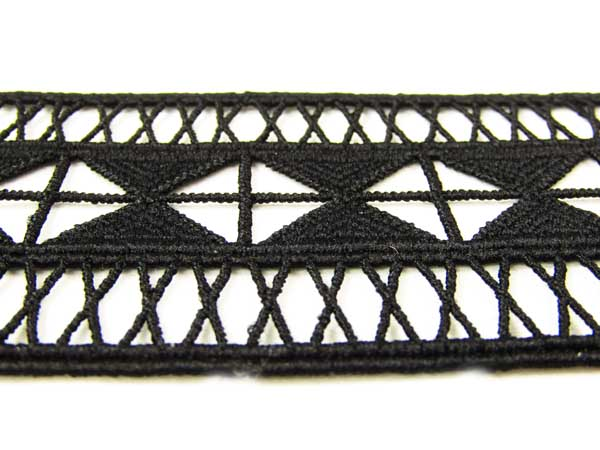 Koronka gipiurowa o szerokości 7cm w formie wstawki o geometrycznym wzorze. Taśma ma wykończenie matowe.