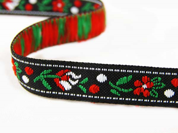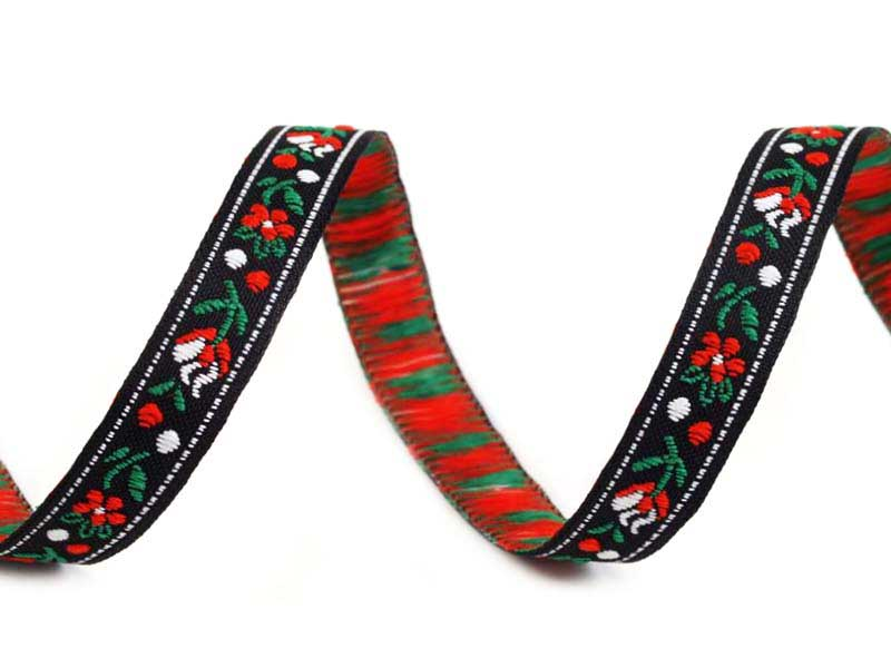 Taśma żakardowa pierwotnie przeznaczona do ozdabiania strojów ludowych, dziś używana jest również do ozdabiania odzieży, tekstyliów do mieszkań, zabawek i przedmiotów upominkowych. Oferuje nieograniczone możliwości zastosowania. Taśma żakardowa tkana maszynowo i wykonana z przędzy poliestrowej.