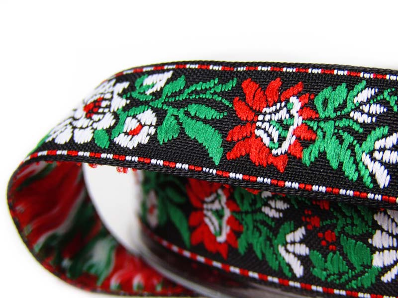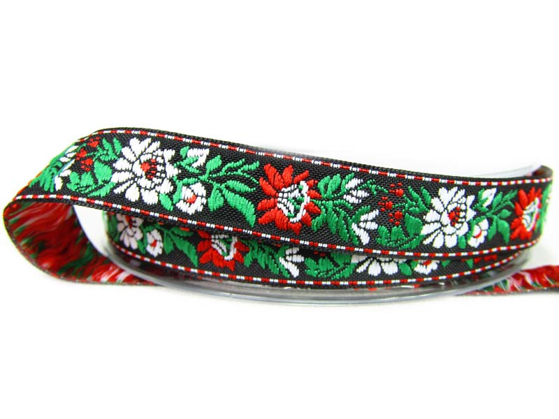 Taśma żakardowa pierwotnie przeznaczona do ozdabiania strojów ludowych, dziś używana jest również do ozdabiania odzieży, tekstyliów do mieszkań, zabawek i przedmiotów upominkowych. Oferuje nieograniczone możliwości zastosowania. Taśma żakardowa tkana maszynowo i wykonana z przędzy poliestrowej.