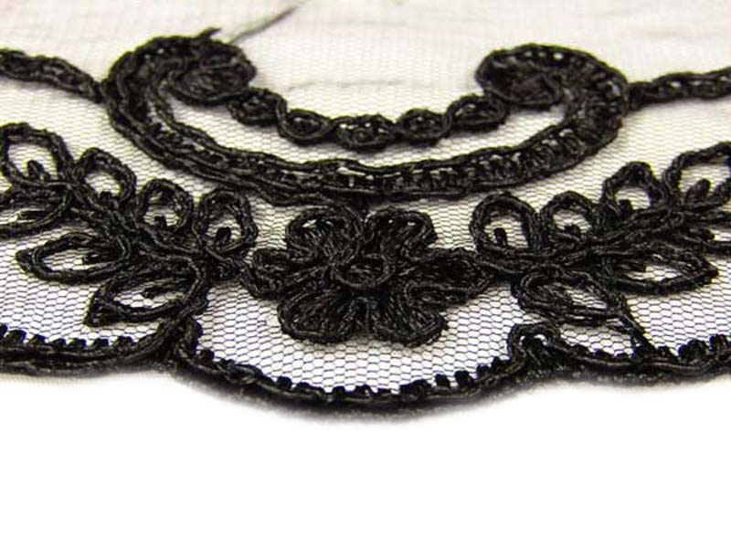 - Koronka tiulowa o szerokości 6cm ze wzorem kwiatowym w kolorze czarnym.