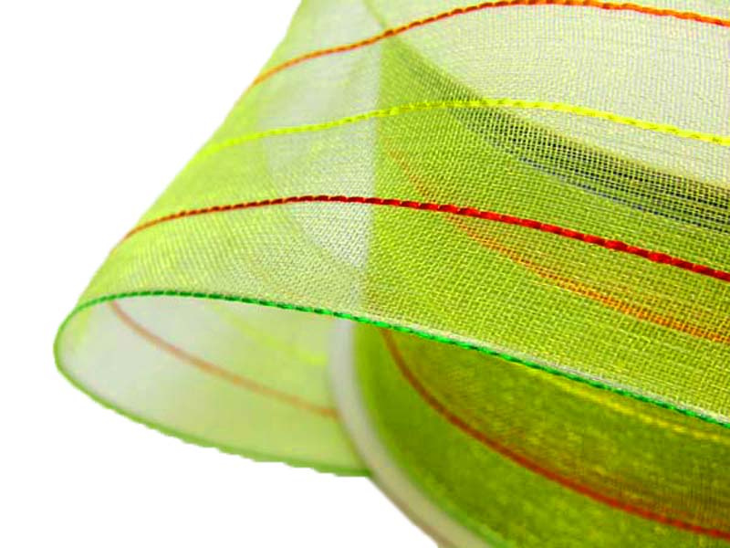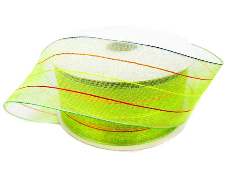Wstążka z organtyny o szerokości 4cm z ozdobnym paskami w kolorze. Dodatkowo wyposażona w druciki na obu brzegach.