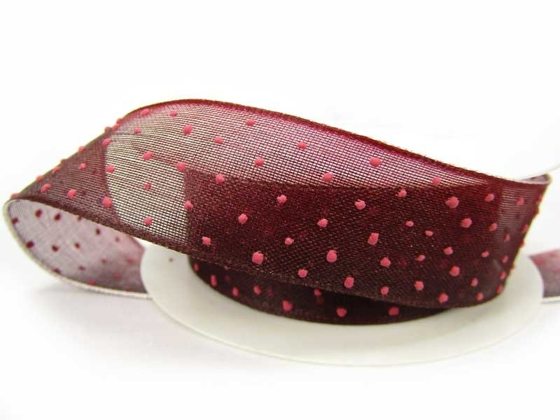 Wstążka 25mm organtyna KROPECZKI bordo