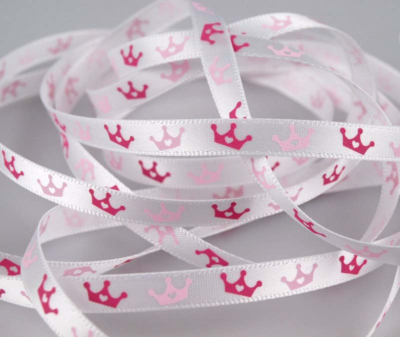 - Wstążka atłasowa o szerokości 0,6cm z różowym dziecięcym nadrukiem.