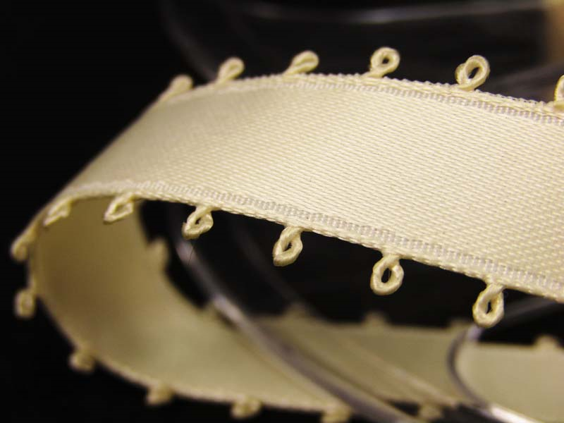 - Wstążka atłasowa dwustronna o szerokości 16mm z brzegiem wykończoną pętelką w kolorze.