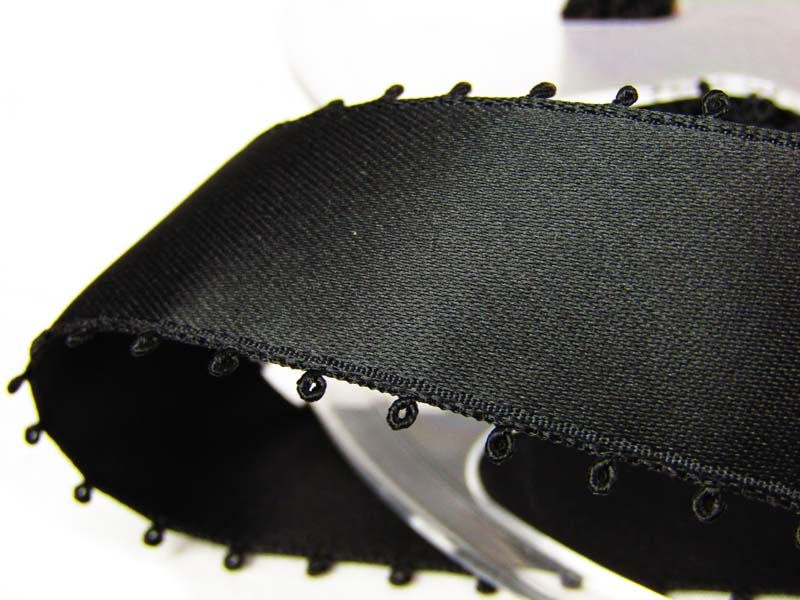 Wstążka 25mm atłas PICOT czarna