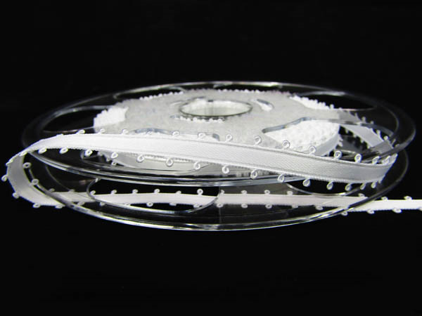 Wstążka 9mm atłas PICOT biała