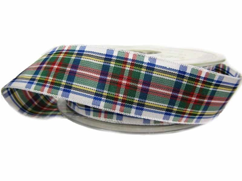 Oryginalna szkocka, tkana kratka na wstążce o szerokości 2,5cm w kolorze. Tasiemka jest dwustronna & ma wykończony brzeg.