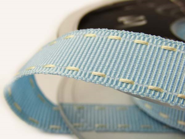 Taśma rypsowa o szerokości 15mm w kolorze stebnowana białą nitką.