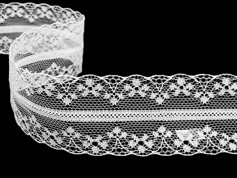 • Koronka stabilna w formie wstawki z dwustronnie wykończonym brzegiem o szerokości 3,8cm w kolorze.