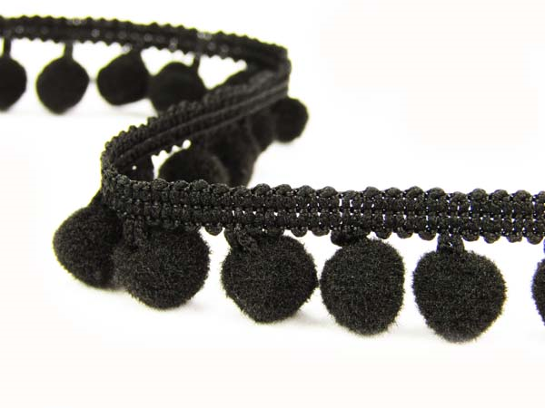 Pompony poliestrowe na taśmie o szerokości 1,8cm w kolorze.