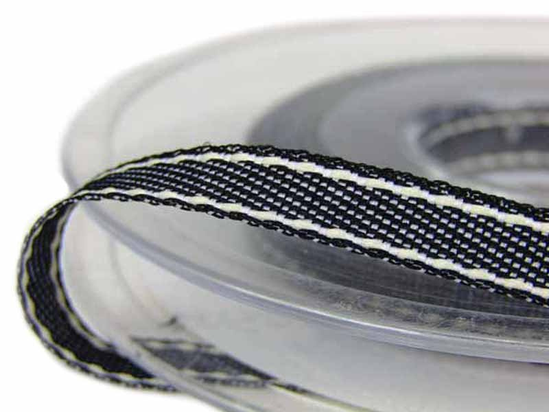 Miękka, mięsista tkana taśma o szerokości 7mm w kolorze z jasnym ozdobnym brzegiem.