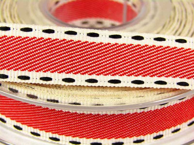 Taśma 15mm tkana VINTAGE STITCH czerwona