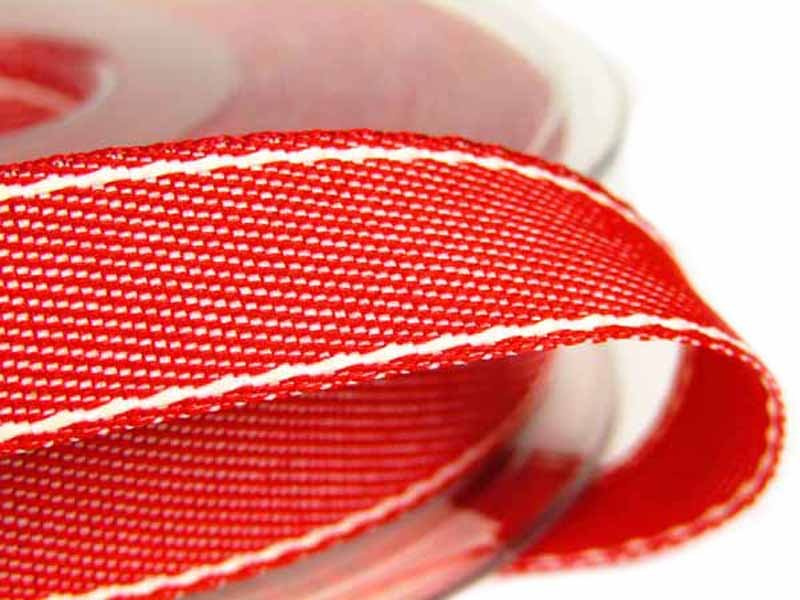 - Miękka, mięsista tkana taśma o szerokości 15mm w kolorze z jasnym ozdobnym brzegiem.