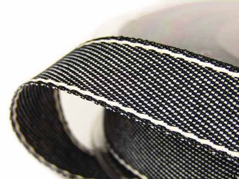 - Miękka, mięsista tkana taśma o szerokości 15mm w kolorze z jasnym ozdobnym brzegiem.