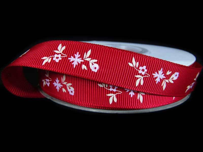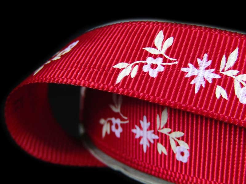 Wstążka 17mm ryps GAŁĄZKA czerwona