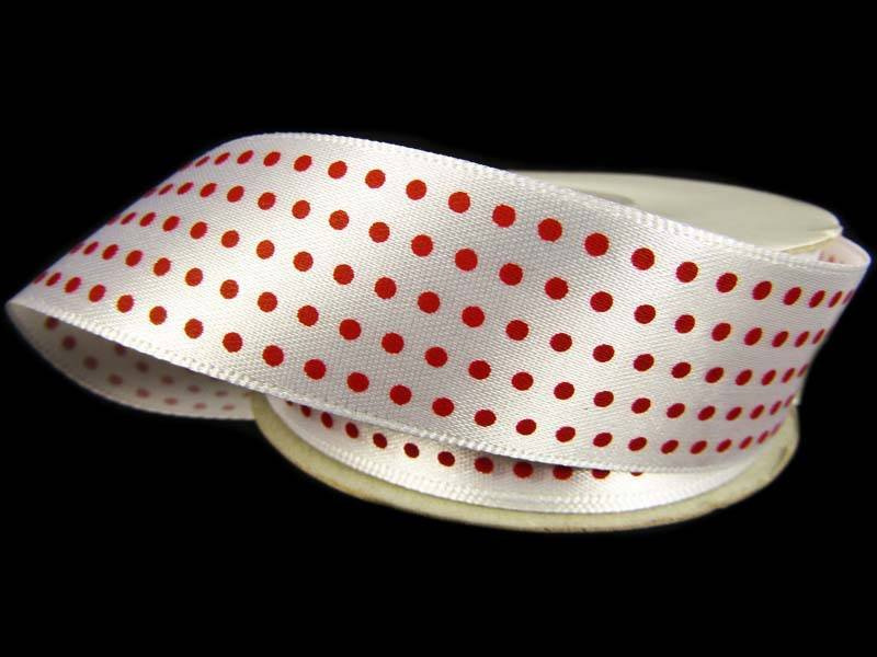 Wstążka 25mm atłas KROPECZKI czerwona