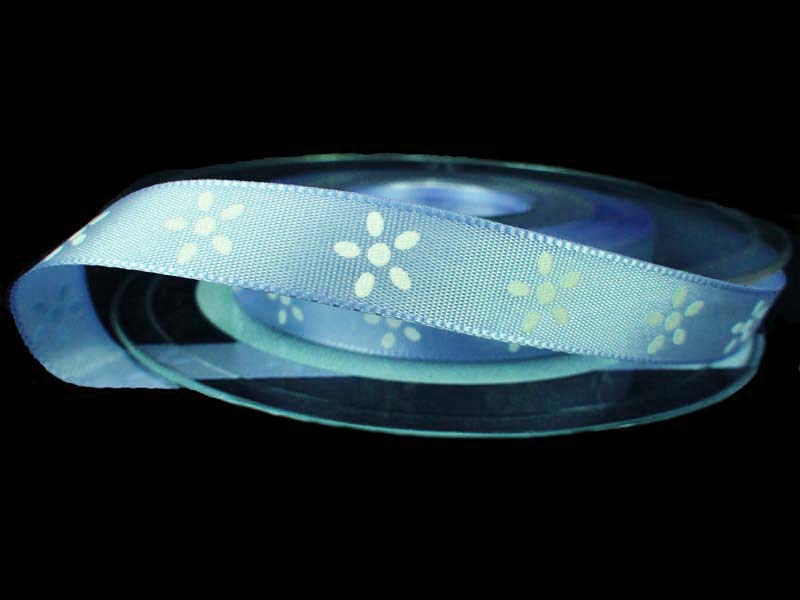 - Wstążka z tafty o szerokości 1cm z białym nadrukiem na kolorowym tle.