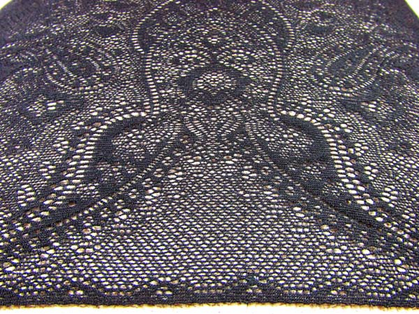 - Koronka elastyczna o szerokości 55cm o bardzo delikatnym, drobnym wzorze.Tkanina nie ma ozdobnie wykończonych brzegów.