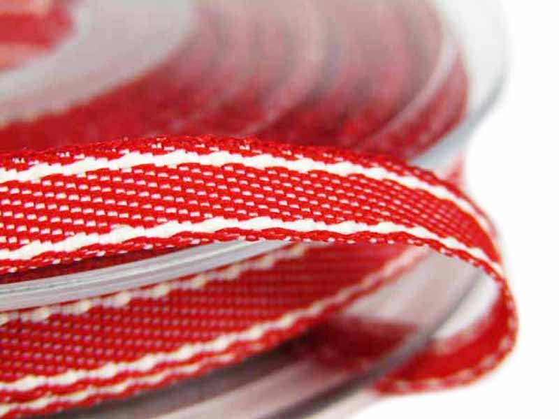 Miękka, mięsista tkana taśma o szerokości 7mm w kolorze z jasnym ozdobnym brzegiem.