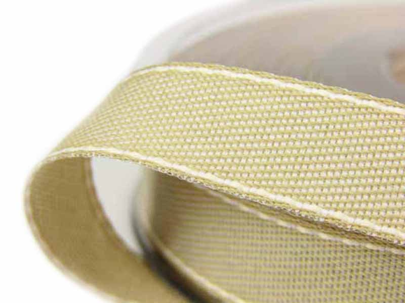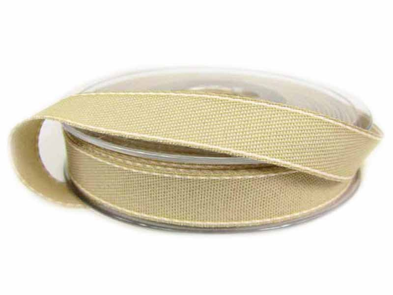 Miękka, mięsista tkana taśma o szerokości 15mm w kolorze z jasnym ozdobnym brzegiem.