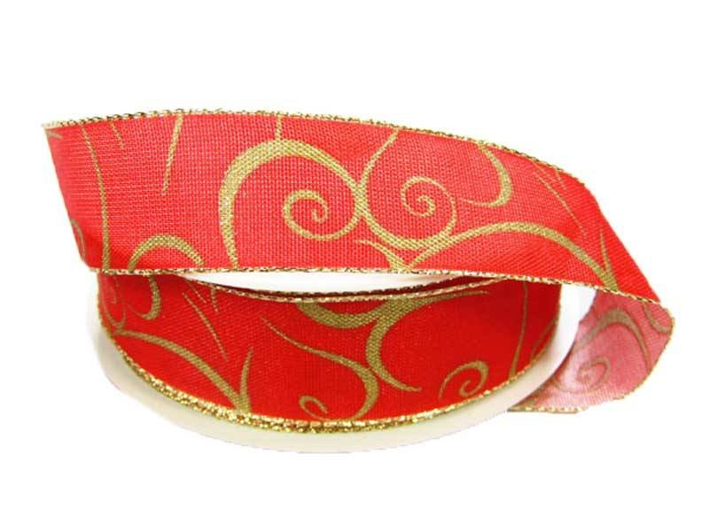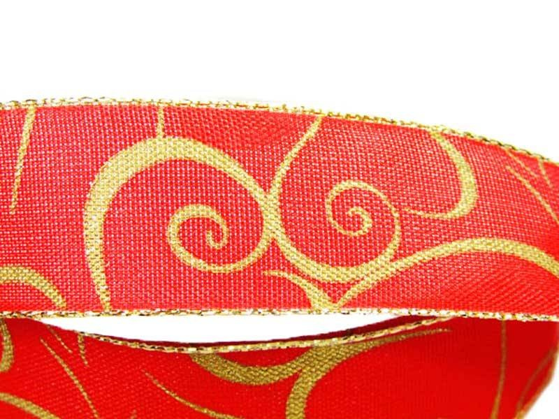 - Wstążka świąteczna o szerokości 2,5cm ze złotym nadrukiem. Dodatkowo wyposażona w drucik po obu brzegach wstążki.
