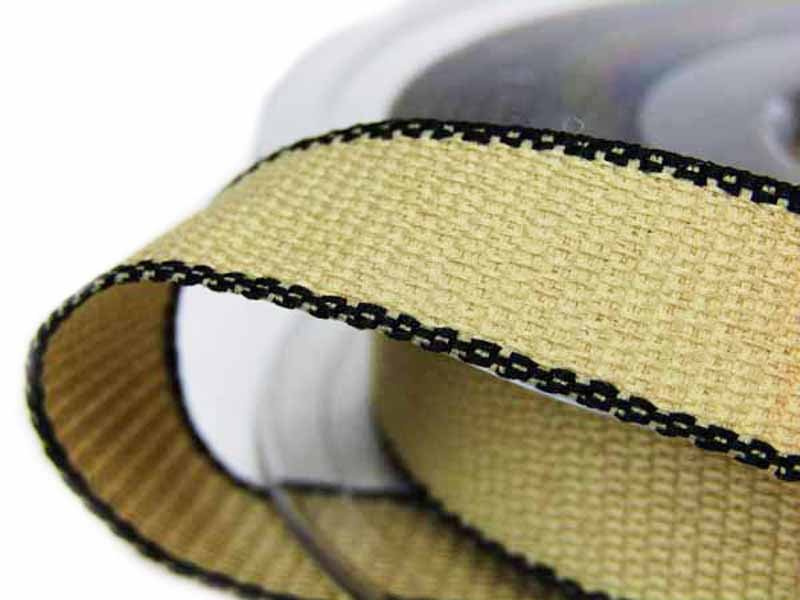 - Tkana taśma o strukturze rypsu w kolorze naturalnym. Brzegi odpowiednio ozdobione kolorem.