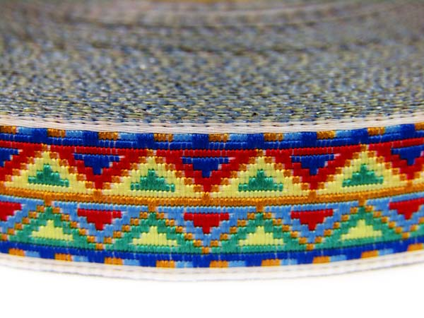 - Taśma żakardowa o szerokości 1,6cm o ciekawym wzorze w multikolorze.