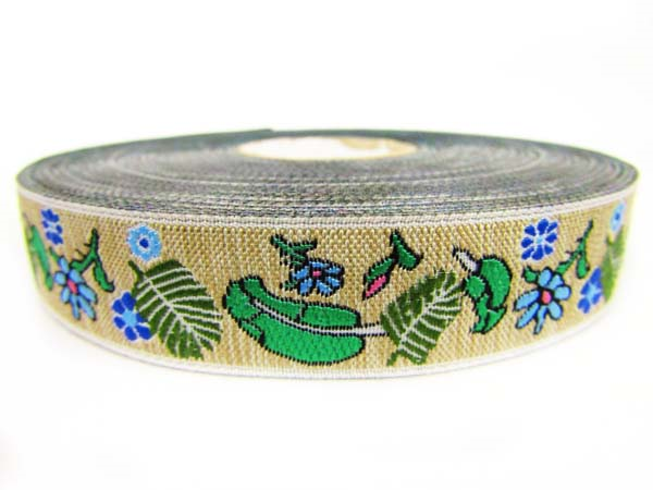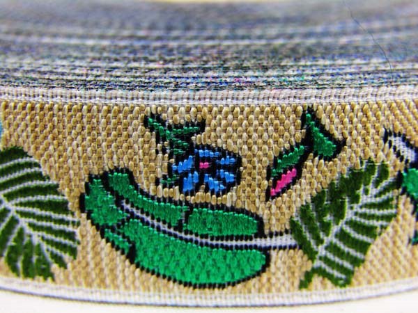 - Taśma żakardowa o szerokości 2cm o roślinnym wzorze.