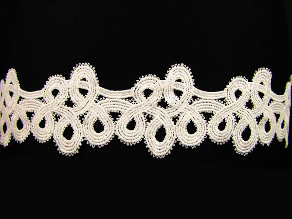 Ciekawa koronka gipiurowa o szerokości 7cm w kolorze o matowym wykończeniu.