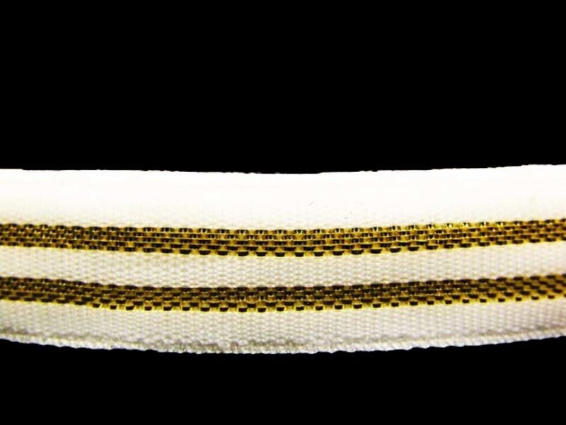 Elastyczna taśma o szerokości 1cm z dwoma błyszczącymi lampasami pośrodku.