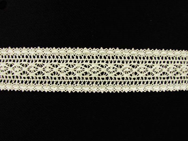 Wstawka bawełniana o szerokości 3,cm w kolorze naturalnej bawełny. Koronka robiona z cienkiej, delikatnej nitki z misternie tkanym wzorem.