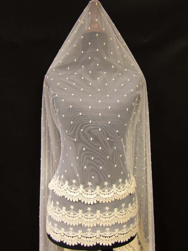 - Piękna, w starym stylu haftowana na tiulu koronka bawełniana.