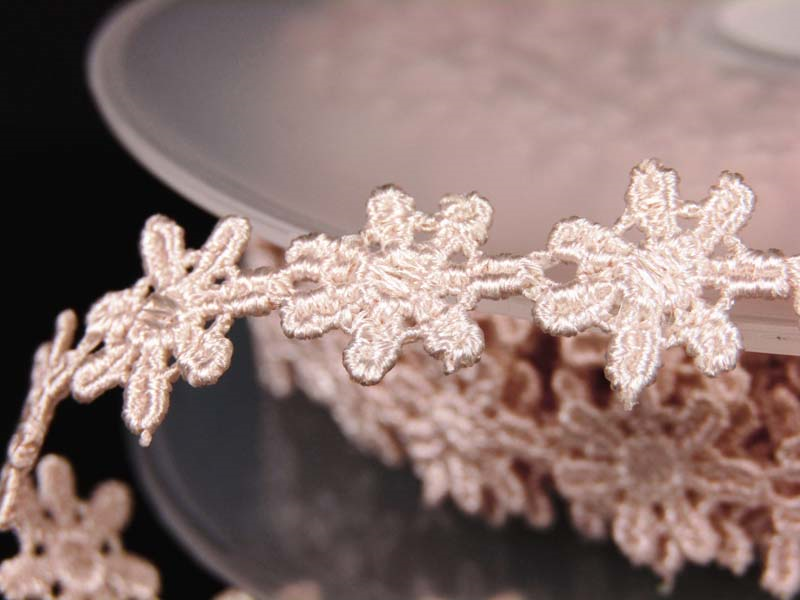 - Koronka gipiurowa o szerokości 1,3 cm w formie kwiatków.