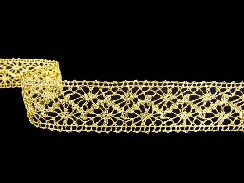 Koronka metaliczna w formie wstawki o szerokości 2,5cm w kolorze złotym.