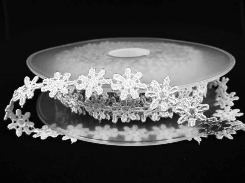 - Koronka gipiurowa o szerokości 1,3 cm w formie kwiatków.