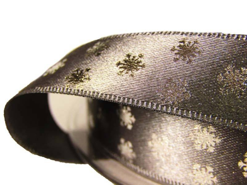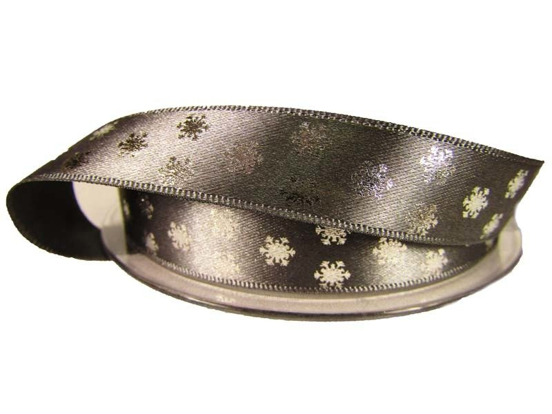 Wstążka 15mm atłas PŁATKI ŚNIEGU ciemny popiel