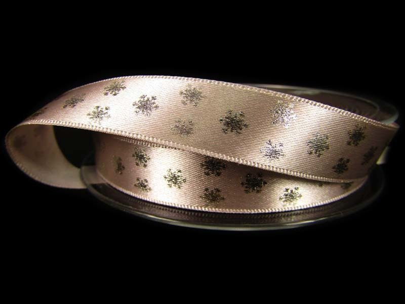 Wstążka 15mm atłas PŁATKI ŚNIEGU popiel