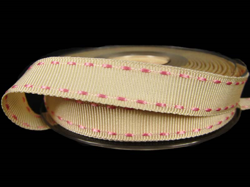 Taśma rypsowa o szerokości 15mm w kolorze stebnowana kolorową nitką.