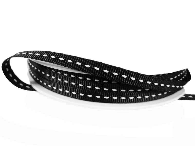 - Taśma rypsowa stebnowana o szerokości 6mm w kolorze czarnym z białą stebnówką.