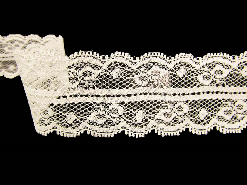 Koronka stabilna o szerokości 3,8cm w kolorze. Koronka jest dwustronnie wykończona i można ją przeciąć przez środek i otrzymać wąską 1,5cm koronkę.