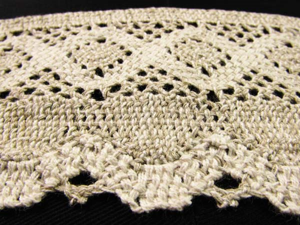 Koronka klockowa o szerokości 8cm w kolorze lnu z dodatkiem ekri.