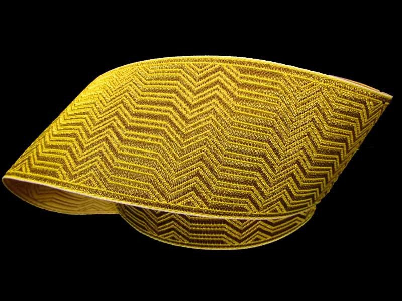 - Taśma żakardowa o szerokości 5cm wykonana z nitki metalicznej w kolorze złotym.