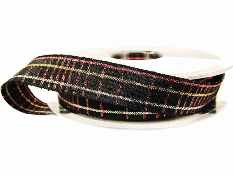 - Miękka i bardzo miękka wstążka o szerokości 1,5cm o wzorze kratki wykonanej ze złotej i miedzianej nitki lurexowej.