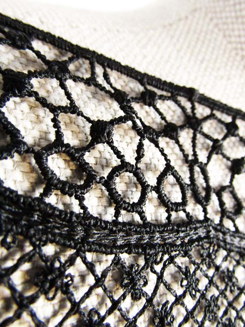 - Piękna, delikatna koronka gipiurowa z jednostronnie wykończonym brzegiem.